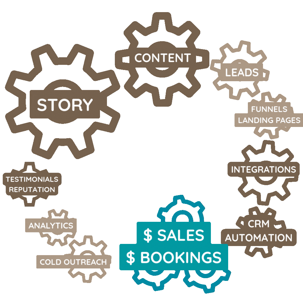 We help businesses build a Marketing Machine™ — a 4-part system that connects story, structure, and sales so your business runs smoothly and predictably.